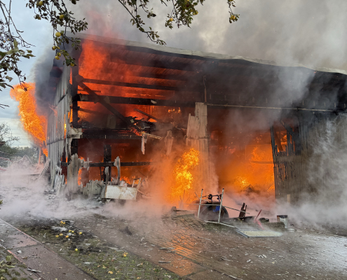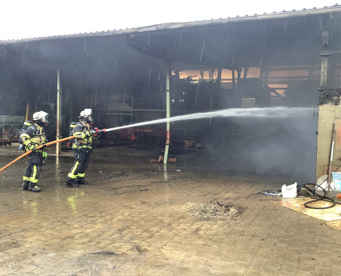 Beim Eintreffen der Feuerwehr stand eine Maschinenhalle auf einem landwirtschaftlichen Anwesen in Vollbrand. Personen oder Tiere waren nicht in Gefahr.
