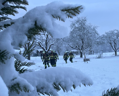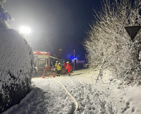 Aufgrund der Witterung gestaltete sich die Anfahrt und der Aufbau des Löschangriffes schwierig. Die Brandbekämpfung erfolgte durch zwei Trupps mit Pressluftatmern, sowie zwei C-Rohren. Das Gartenhaus wurde auf Personen abgesucht, da es sich um ein offensichtlich „bewohntes“ Gebäude handelte. Es wurden keine Personen angetroffen. Um das Gartenhaus restlos löschen zu können wurde es eingerissen. Die Hygienekomponente wurde im Anschluss für die eingesetzten Trupps nachgefordert.