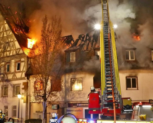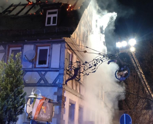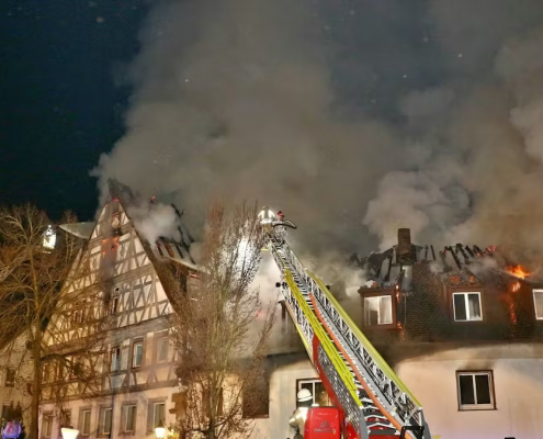 Die Kräfte der Feuerwehr unterstützten die örtliche Einsatzleitung. Parallel dazu wurde über die Drehleiter auf der Gebäuderückseite eine Brandbekämpfung aus der Höhe durchgeführt. Weitere Einsatzkräfte unterstützten die Führungsstruktur sowie die Organisation eines Bereitstellungsraums.