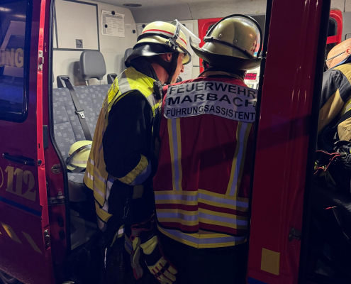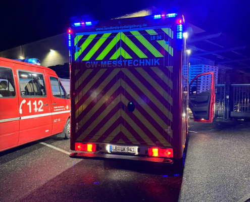 Ein Fahrzeug übernahm den Aufbau und Betrieb der örtlichen Einsatzleitung, während die Drehleiter in Bereitstellung blieb.
