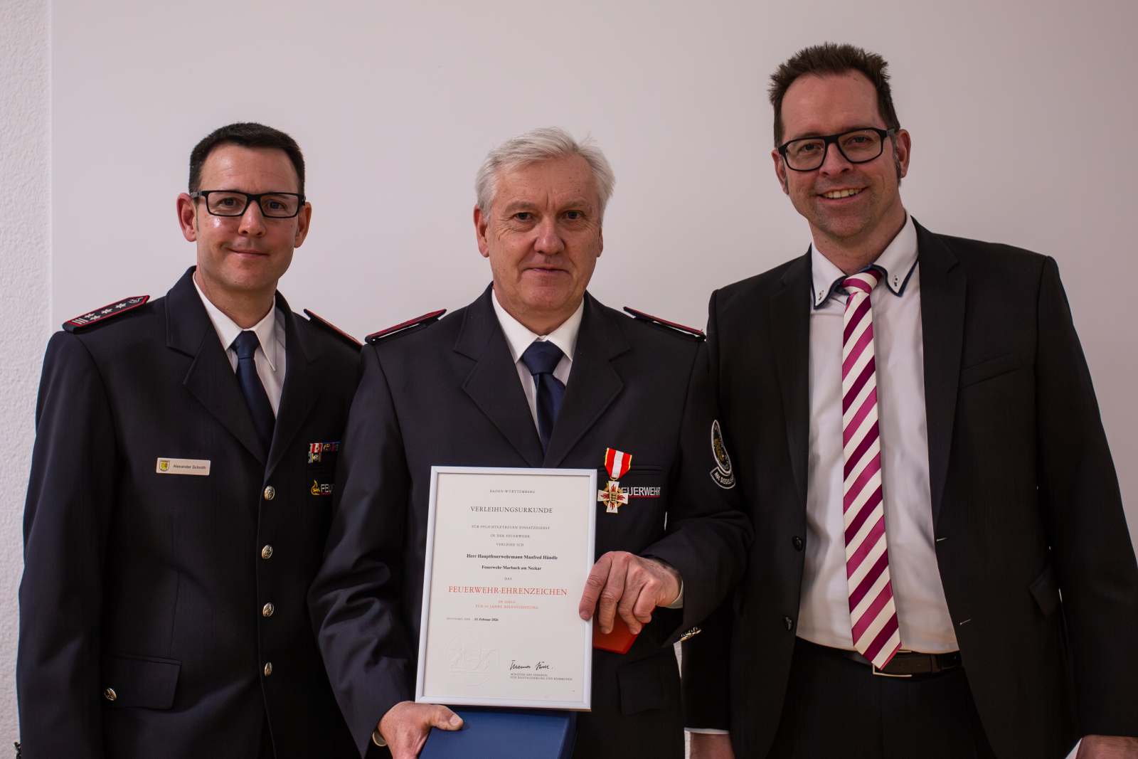 Zum Abschluss dankte Kommandant Schroth der Stadtverwaltung, allen Führungskräften und Ausschussmitgliedern sowie insbesondere allen Einsatzkräften für ihren Einsatz und ihre Verlässlichkeit. Er rief dazu auf, auch weiterhin gemeinsam und geschlossen die Zukunft der Feuerwehr Marbach zu gestalten.